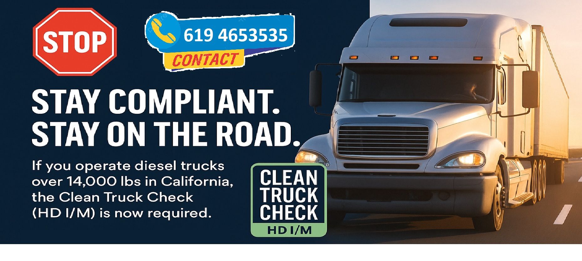 All heavy-duty diesel vehicles operating on California public roads must now obtain a Clean Truck Check from CARB-credentialed heavy-duty inspection and maintenance testers. Please ensure compliance to avoid DMV registration holds and hefty fines of over $1,000 per day for each vehicle